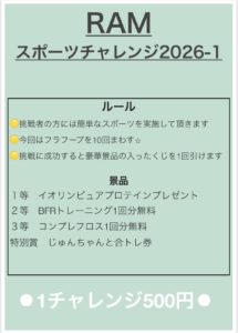 簡単なスポーツに挑戦して頂き、挑戦成功者の方には豪華景品の入った